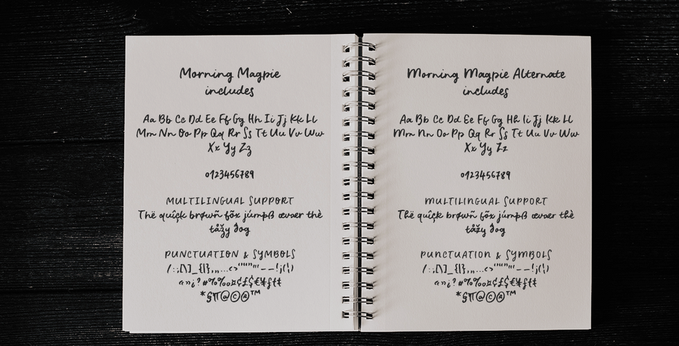 Morning Magpie is a cute handmade brush font with matching illustrations and decorative elements, and an alternates character set.
